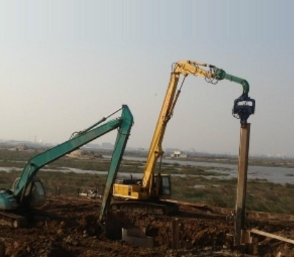 2、范围广:除了不能入岩,高频液压打桩机几乎适用于任何恶劣地质条件下的施工,可轻松穿透卵石层、夹沙层等地质。